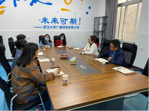 2月28日下午,suncitygroup太阳集团与专业共建合作企业武汉大华广通科技有限公司就专业建设、实训室建设进行沟通交流。系主任王利卿,副主任李戈,副书记王远志参加会议。
